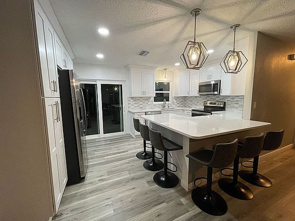 Amazing opportunity to own this beautiful NEWLY REMODELED home (2022). This immaculately maintained 2-bedroom, 2-bath home, situated in a quiet CUL-DE-SAC section of Sunset Estates. Built in 1980, this residence features a 1-car garage and modern amenities including smart home technology with a programmable thermostat, a Ring doorbell, a home security system, and an automated irrigation system. This home has a NEW Hot water heater, NEW A/C unit. NEW Jeld-Wen WINDOWS (impact and cyclic rated) throughout the house and a “Custom Window Systems” Patio door. The living and dining areas open floor plan is designed to impress, boasting expansive windows that fill the home with natural light. The screened patio connects the kitchen, creating a perfect entertainment opportunity while providing shade from the Florida sun. Spacious kitchen features ceramic and glass tile backsplash, newer stainless-steel appliances, Quartz countertops, and a pantry. The main bathroom was also remodeled. NEW Roof with architectural shingles. The home's thoughtful layout, as shown in the floor plan, maximizes space and flow, making it perfect for a small family. Don’t miss this opportunity— CONTACT US today for a private showing! (813)528-5900 Please bring your Pre-approval letter.