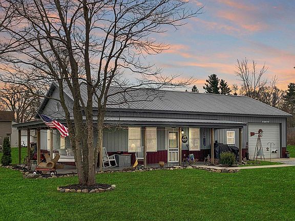 Welcome to this charming 2 bedroom, 2 bath home located outside Winamac in the picturesque village of Pulaski. Built in 2018, this home boasts a wrap-around porch that provides stunning views of the surrounding landscape and plenty of space to relax and unwind. As you step inside, you are greeted by a warm and inviting atmosphere. The open concept living area features large windows that let in plenty of natural light, and vaulted ceilings throughout. The exposed ductwork gives that industrial feel. The kitchen is complete with modern stainless steel appliances, sleek cabinetry, and a rustic island. The adjacent dining area is perfect for gatherings with family and friends. Both bedrooms are spacious and feature finished concrete flooring, and large windows that allow plenty of natural light. The primary bedroom includes an ensuite bathroom with tile plank floors. The wrap-around porch is the highlight of this home, providing a peaceful and serene place to relax and enjoy the beauty of nature. Whether you're sipping your morning coffee or reading a book in the afternoon sun, the wrap around porch is the perfect place to unwind. This home also features an oversized heated and air conditioned 1 car garage, providing ample space for parking and storage. The double lot offers plenty of space for outdoor activities and entertaining. The village of Pulaski is known for its friendly residents, picturesque scenery, and small-town charm. With easy access to local shops, restaurants, and attractions, this home is the perfect place to call home. Don't miss your chance to make this your beautiful NextHome!