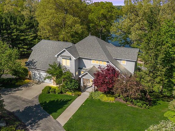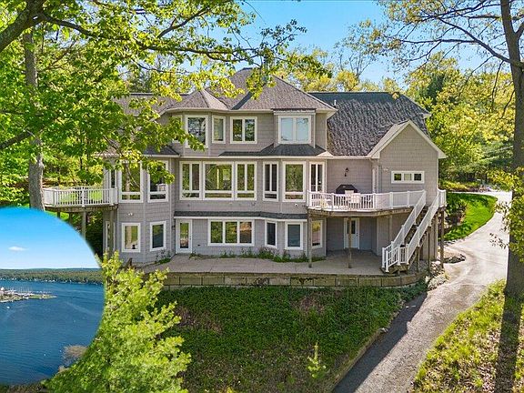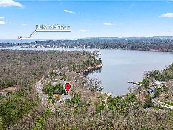 Absolutely STUNNING Pentwater lakefront home! Extremely rare opportunity with this gorgeous 5+ bedroom, 4 bath home with over 4,000 square feet of living space situated on all sports Pentwater Lake with easy access to Lake Michigan! This high quality custom built home is nestled on close to an acre of quiet and private lakefront and features a wonderful open floor plan that takes advantage of the s-million dollar lake views in almost every room! The living room is spacious and open to the kitchen with a cozy wood burning fireplace as one of the highlights of the space with option to make it gas. The eat-in dining area also takes advantage of the views, with access to the trex deck, perfect for outdoor entertainment. The kitchen has lots of cabinet space and features granite countertops, walk-in pantry, stainless appliances and a convenient island, a perfect space for entertaining. Just off the living room is a main floor office/flex space with an attached full bathroom that could also be used for a main floor bedroom or in-law suite. The main level four season room is light and bright with lake views from every part of the room, along with access to its own private deck. The upper level features a spacious primary bedroom with a huge walk-in closet/laundry room, a beautiful bay window and attached ensuite bath with luxurious soaking tub. Three additional bedrooms on the second are a great size including the "bunk room" that has bunk beds, and room for many more guests! The walkout lower level is finished with 9' ceilings and a perfect entertaining space with family/game room, wet bar, built in's, and a 5th bedroom and another full bathroom. Just outside is another large outdoor patio space and has stair access to the lakefront with deep water docking space and boatwell. SO many upgrades including a 2+ car garage, plus an additional 2+ car garage on the side of the home, perfect for storing all the toys and your own private drive down to the water. The gas grill has a built in gas line so you never run out! Additional features include double water heaters, built in speakers, windows have lifetime warranty, and the water frontage has a steel seawall with newer decking! Pentwater Lake is a 431 acre all sports lake with easy access to Lake Michigan down the channel and known for its amazing fishing and scenery. The location is perfect, just a few minutes to downtown Pentwater, 20 minutes to Ludington, and a short 15 minute drive to Silver Lake Sand Dunes and easy highway access. Memories are ready to be made in this fabulous home, call us to schedule your home today!