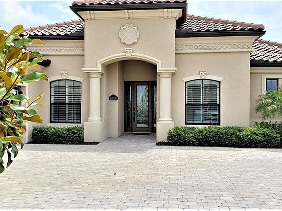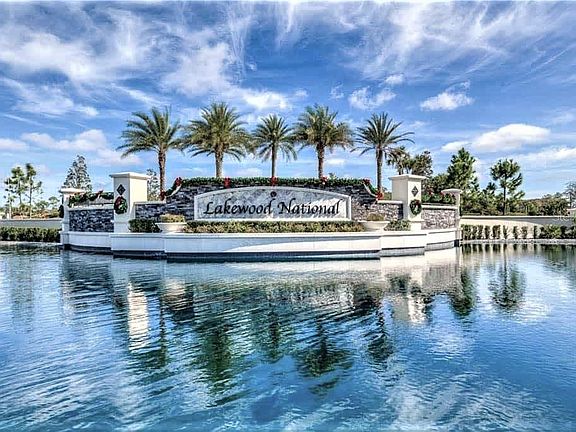 Lakewood National, a golfers paradise. With the PGAs Korn Ferry Tour hosted by LECOM, homeowners get a front row seat. Lakewood National with two 18-hole challenging Arnold Palmer courses. Ranked #3 golf course in Florida. Gorgeous like new home backing to lake with golf course views. 2018 Estate home with 3-car garage on beautiful Arnie Loop in Lakewood National. Rarely used. Lakewood National rated #3 in Florida Golf Courses! Why wait and build. Luxury upgraded, Heated saltwater pool with LED lights, 2 waterfalls, IPhone controlled. This spectacular smart home is ready for you now. Short walk to the Recreation Center, Huge Community heated pool, Tennis, Fitness, Tiki Bar Restaurant etc. New Clubhouse will be completed in 2021. High-end upgrades placed throughout. Lanai with custom wood ceiling, outdoor kitchen and extended paved pool deck which runs across back of home for gracious outdoor living and entertaining. Pool bath off Lanai. Features 3 bedrooms plus outstanding custom office with glass french doors, custom built-in shelves, cabinets with lighting, desk, closet and hardwood floors. Plantation shutters, custom remote controlled Shades, crown molding, complete upgraded interior paint throughout home, light fixtures, ceiling fans w/lights, security system. See upgrade list. Striking decorative custom coffered ceilings in Great Room, Formal dining Room and Master Bedroom. Great room features custom built-in full in-wall Entertainment Center with shelves, designer cabinets, stone background and TV. Spacious Master suite with large walk-in closet. Master Bath features upgraded cabinets, granite countertops and large easy walk-in shower. Kitchen with popular dark upgraded cherry cabinetry, granite counters and open to the Great Room with bar and separate breakfast room overlooking the pool and lake. Laundry room with cabinets, sink and pantry. 3-Car 20x32 Side Load Garage, epoxy floor, woodworking area w/table, great storage. Huge Paver driveway for easy turnaround. All pavers sealed. Some furniture negotiable. LWN is a resort like gated maintenance-free community. Lighted Tennis courts, Pickleball, Fitness, resort-style Pool, Spa. Golf & Tennis pros. Amenity Center with activities Director, Fitness and outdoor Tiki Bar/restaurant. Close to shopping, restaurants, schools, medical, top rated beaches. Golf membership is included in fees, best deal around.CDD fee is included in tax amount shown. A must see. Call today.