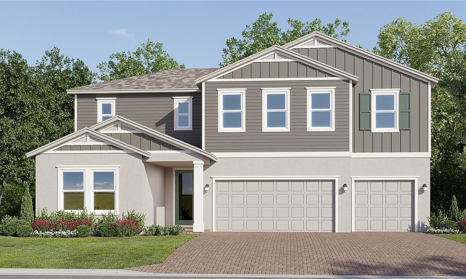 One or more photo(s) has been virtually staged. Under Construction. Welcome to the upscale two-story Symphony! There is a first-floor owner’s suite that offers a comfortable retreat with a full bathroom and walk-in closet. Near the front of the home off the foyer are a secondary bedroom and a flex space, ideal as an office or studio. An open-concept floorplan with easy access to a covered patio encourages simple indoor-outdoor living and entertaining. Three additional secondary bedrooms can be found on the second floor near a shared living space in the loft. Every home comes with Lennar’s Everything’s Included® promise, which includes all appliances as well as quartz countertops, blinds, and more in the price of your home. Springhead Lakes in Bridgewalk is one of the most anticipated new communities. At Bridgewalk, families can take advantage of the glorious resort-style swimming pool, extravagant clubhouse, with a state-of-the-art fitness center, playground, basketball & volleyball courts along with close proximity to Lake Ajay! What are you waiting for? Call and make an appt today.