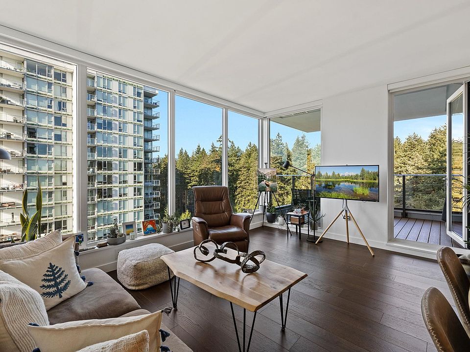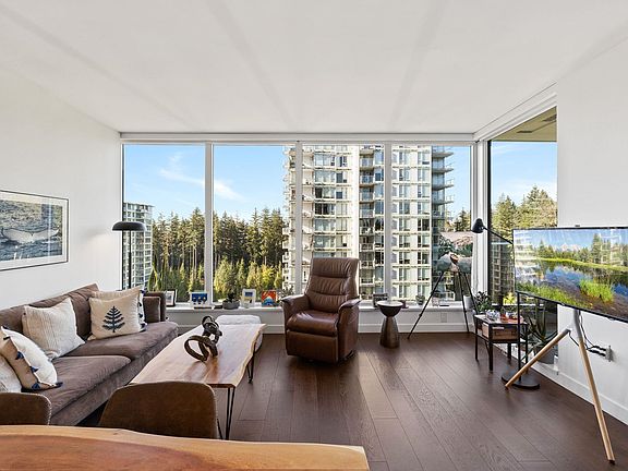 Corner homeBright open livingFloor-to-ceiling windowsAir-conditioned unitsLarge balconySleek kitchenQuartz counters