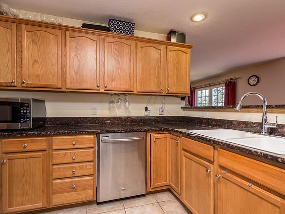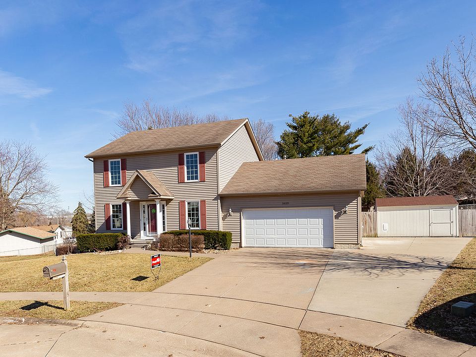 Beautiful and well cared for 2 story located on a nice cul de sac and within walking distance to the elementary and high schools. First level features hard-wood flooring throughout and large living room with a nice fireplace. The kitchen has been updated with granite countertops, glass tiles back-splash, new dishwasher & disposal. Master bedroom has private bath with jetted tub, vaulted ceilings and walk in closed. Walkout finished basement with a large laundry room, a full bath and multiple storage spaces. Ceramic floors in the kitchen, informal dining and upstairs baths. A large deck made for entertaining overlooks the fenced in well maintained yard with a vegetable garden. Play house and a stone patio completes the back yard assets. New casement windows throughout. Driveway extended to allow more parking space including boat/RV. Large shed (16 x 12) conveniently accessed from the back driveway. All measurements approximate, buyer and/or buyer's agent must verify all information.