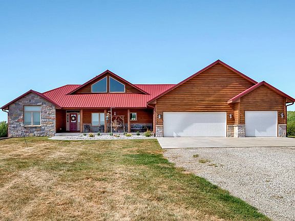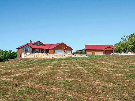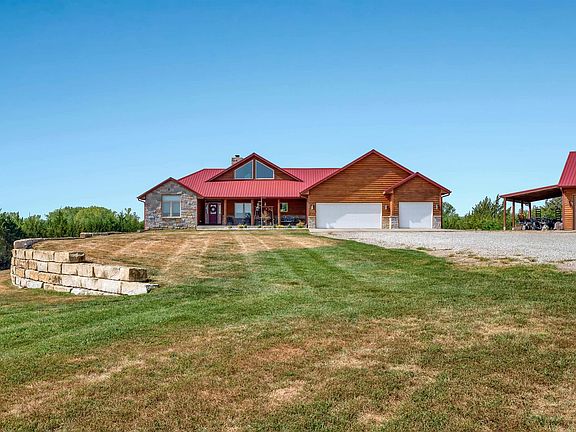 Nestled on a sprawling 6.71-acres. This builder's home offers a remarkable living experience enriched by daily wildlife sightings & picturesque surroundings. Outdoor features include:54x32 stick -framed building w/ lean-to for sheltering machinery, RV's etc.,workshop, fully insulated, full bath, radiant floor heating & window air unit. ½ acre Pond is receiving rubber liner to ensure it holds water . -Inviting Country porch -60x15 Patio - 51x14 -maintenance free composite deck partially covered w/ $13,000 Viking grill encased by stone, durable metal roof A combination of stone & log siding, creates a timeless appeal & complements the natural beauty of the surroundings. Within the walls of this remarkable builder's home, you'll find a seamless blend of rustic charm & modern comfort. Main bedroom suite w/ huge walk-in closet & double ceramic shower, transforms your daily routine into a spa-like experience. Great room is ideal for gathering w/ family & friends, featuring Custom kitchen w/ hickory cabinets, quartz tops, gorgeous cobblestone fireplace, tongue & groove pine ceilings, vaulted ceilings, radiant floor heat thru-out the home. Sunlit & spacious walk-out basement w/ 2 bedrooms, 1 bath. Enjoy a large family/rec room w/ a 2nd stone fireplace.Every inch of this property encourages a deep connection w/ nature & joys of outdoor living. This home offers a truly magical escape from the ordinary.Call today for viewing! licensed-owner agent.