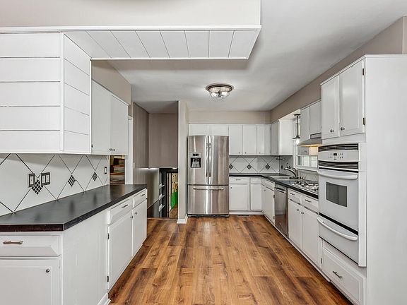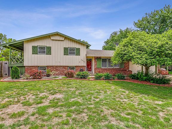 Welcome to 5629 Perryton St located in sought after Bel-Aire Kansas. This charming tri-level is nestled in a quiet neighborhood just minutes from shopping and convenient access to K-96. Walking inside buyers will be greeted with newer wood laminate flooring throughout. The living room with fireplace provides a great space to relax with friends or family. Kitchen includes stainless steel refrigerator and dishwasher that convey and is open to the dining room with access to the backyard. Upstairs large master bedroom has access to private deck, two additional secondary bedrooms have nice closet space and buyer will find a well updated hall bath. Lower level includes large family room, a fourth bedroom and second full bath. Walking out back from double doors just off the dining room, the new owner can entertain with ease in an oversized backyard, in-ground salt water pool, fire pit and shed with electricity and gas hookups. Pool upgrades include - newer pool liner, concrete around pool, diving board, and new 2023 salt cell. This property could be the one you have been waiting for with four bedrooms, 2 car garage, great neighborhood and an in-ground pool for only $225,000! Schedule your showing today!