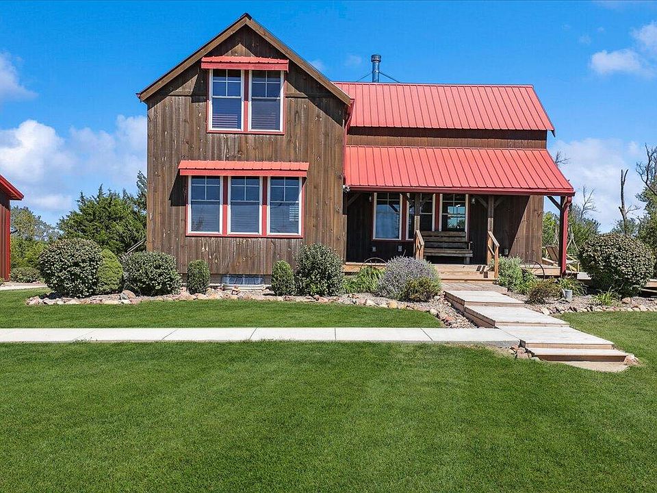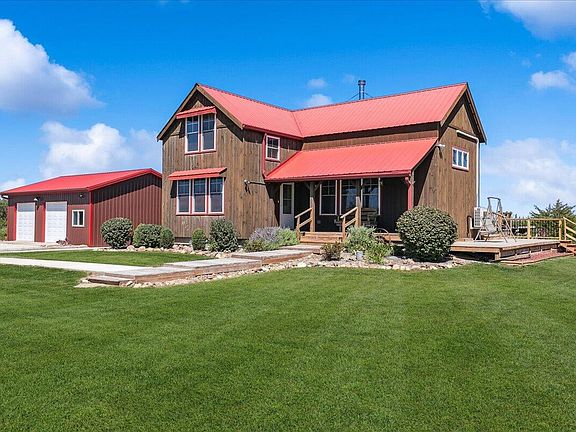 Looking for the perfect acreage but haven't found the right fit? This extraordinary 2-story home sits on just under 8 acres and is packed with features sure to impress. As you arrive, you'll notice the expansive 30x50 outbuilding, perfect for storage, hobbies, or a workshop. Nestled in the peaceful surroundings is a private, fully stocked pond—ideal for fishing or relaxing. The oversized 2-car garage also includes a workshop area for added convenience. The home features expansive decks and a charming front porch to enjoy the beautiful setting. Inside, the rustic charm of knotty pine creates a warm atmosphere. The generously sized living room is great for hosting guests or quiet evenings at home. The large kitchen offers plenty of counter space and a large island, perfect for casual meals, with the adjacent dining area for larger gatherings. On the main level, you'll find a spacious bedroom and bathroom, plus thoughtfully placed storage closets. Upstairs, there are two additional bedrooms, including a primary suite with a walk-in closet and another large bedroom perfect for a home office or guest space. The upstairs bathroom has a double vanity and a beautifully tiled tub/shower combo. For year-round comfort, the home is equipped with radiant floor heating, a mini-split unit, and electric heating. The unfinished basement offers endless potential, including a possible 4th bedroom and more living space. Schedule your tour today!