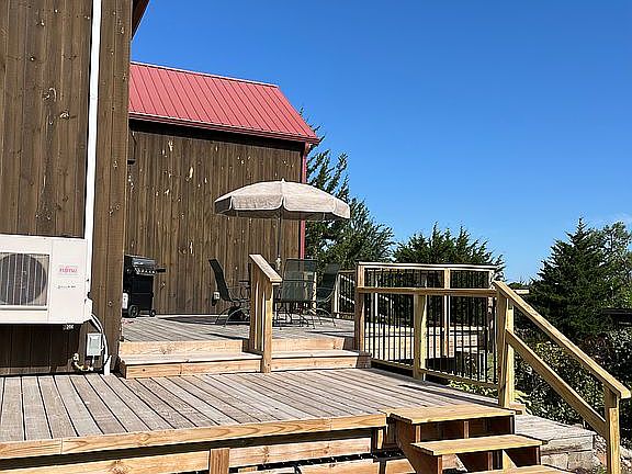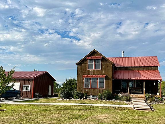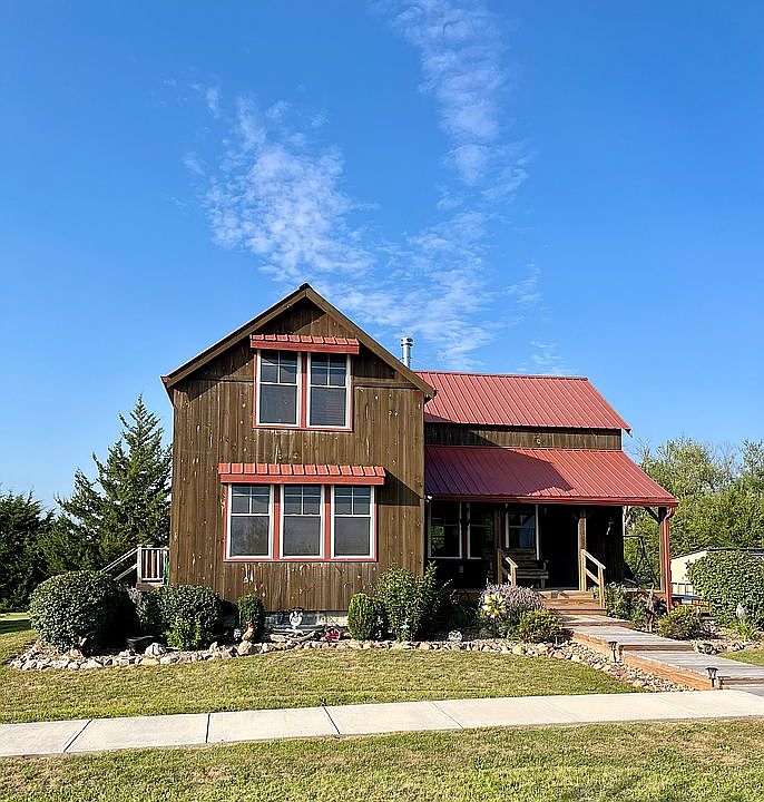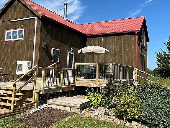 Own this custom built 2012 modern upscale cabin like home. Situated on almost 8 acres of land, this home has 1600 ft.² of finished and 1000 ft.² of unfinished basement giving you a total of 2600 ft.² of livable space. It is situated on a park like grounds with a large garden area and a small greenhouse, four wheeler trails, chicken coop, wood shed, stock three-quarter acre pond with a dock, fire ring for gatherings and several fruit trees. This home offers three bedrooms and two bath with mostly wood and little drywall. The woodwork and quality craftsmanship throughout this home is apparent down to the smallest details. There are stunning views of the countryside from windows. Wood and tile floors, prevail with carpet only in large master suite which features a walk-in closet. Vaulted ceilings upstairs and in the kitchen. This home features a woodburning stove, radiant floor heating, and a mini split heat pump for heating and cooling. A huge wraparound deck connects to the front porch, extending your entertaining to the beautiful outdoors. There is also an unattached car 24 x 32 ft garage with an area for a workshop Along with a 30 x 50 metal barn with a 15 x 30 concrete slab inside. Has rural water and a septic system that has passed inspection. Don’t miss out on this once in a lifetime property. Serious or qualified buyers only please