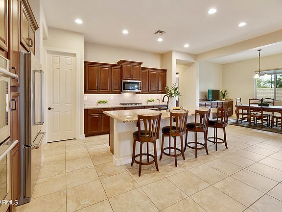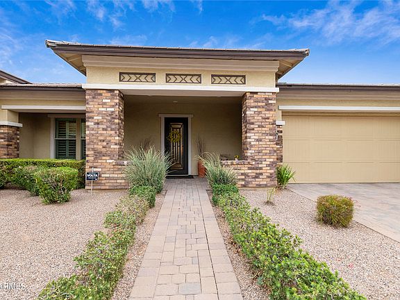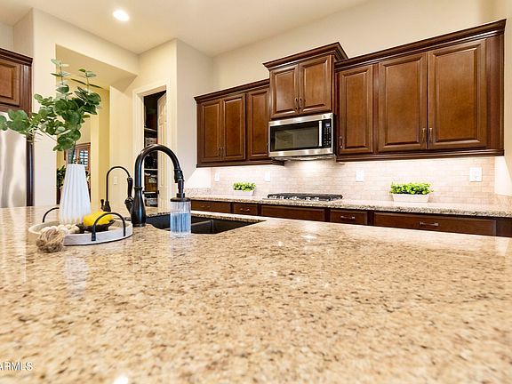 Hard to find Emmy plan with 2 en-suites w/W-I closets, raised vanity with dble sinks, along with separate W-I showers & soaking tubs. Kitchen offers upgraded raised panel w/light rail, lg island, granite counters, upgraded KitchenAid appliances including gas cook-top, & dble wall ovens. The great room offers a multi slider that looks out on the expanded covered patio. Enjoy the mature easy maintenance backyard w/water feature, turf, & storage shed. This home also has an open den, dining room/flex rm & additional enclosed rm for office/craft/exercise room. This home sites on corner lot w/an extended garage w/storage cabinets, & storage cove w/water softener & water heater w/circulation pump. Enjoy Encore, an award winning 55+ community w/pickle ball, tennis, bocci ball, clubhouse & more!