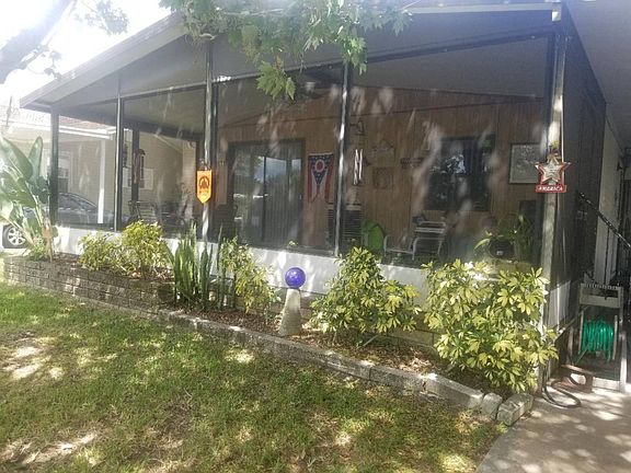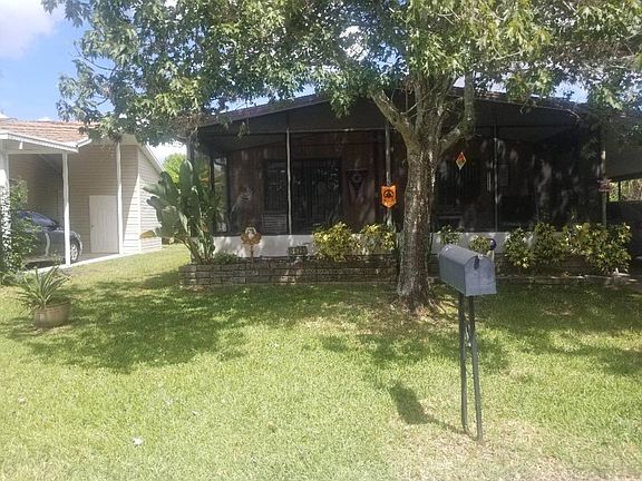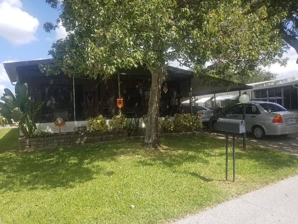 Welcome to Sunny Florida where you will find this attractive, spacious 2 bedroom 2 bath home. It features a refrigerator, stove and microwave and dishwasher. The floors are 4 years old and are laminated and also vinyl. The walls are dry wall and the ceilings are paneled. The air conditioner is 2 years old. This home comes partially furnished. It has great walk-in closets, a screened in porch and sunroom. The carport is a good size and there is also an attached storage shed. A golf cart is included and this lovely home is near the clubhouse and the pool. The lot rent is 805.00. Located in a 55+ community, this park offers a clubhouse, pool, fitness room, library, game room, billiards and fishing and is pet friendly. So why wait, call me to view this amazing home.