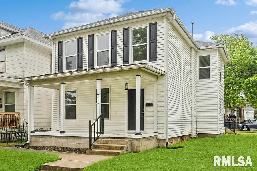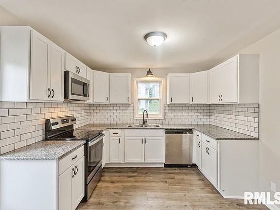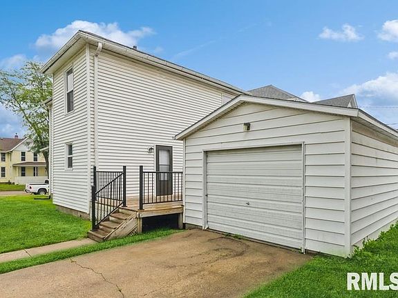 When you enter through the front door of this house you'll notice the new luxury vinyl plank flooring through the main floor and the new carpet that leads up the curved staircase to the second floor. To your left you'll find the living room and just beyond that is the dining room that leads to the kitchen. The kitchen features new shaker style white cabinets, granite countertops, new appliances including a stove, over the range microwave, and dishwasher. The tile backsplash consisting of white subway tile and black grout matches the matte black fixtures found throughout the kitchen and bathroom. The backdoor of the house will take you from the kitchen to a deck with a new black handrail. From there, you can move from the deck to the 1 car detached garage. When you make your way up to the second floor, you will find a new code compliant handrail attached to the wall. The second floor consists of three bedrooms and one full bathroom. The full bathroom has a new vanity, light bar, vent fan, toilet, and a new bathtub with a tiled shower surround. A new roof, furnace, and AC were installed in 2022.