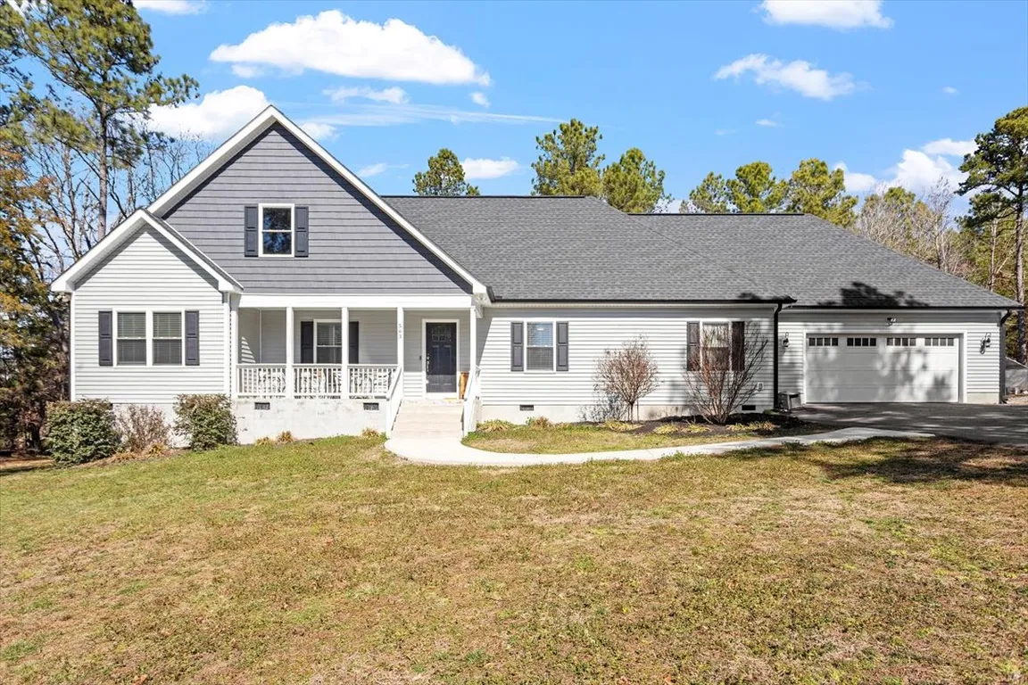 Arrive at your beautiful ranch-style home through a fully paved extended driveway offering ample privacy from the street, a large parking pad, and a convenient roundabout. As you approach, you'll be greeted by a stunning tree-lined lot encompassing 2 acres of unrestricted and serene space—bring your chickens! The charming rocking chair ...