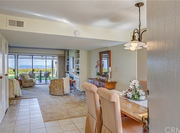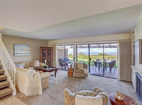 SIT DOWN UNOBSTRUCTED OCEAN VIEWS from the moment you enter this updated townhome. ENJOY MORNING COFFEE in the enclosed front patio and AL FRESCO EVENING SUNSET DINNERS from your covered back patio. White and glass front cabinets in the kitchen along with Bosch dishwasher, Jennair refrigerator, microwave and stove with electric cooktop keep it light, bright and a pleasant place to cook. Convenient pull-out cabinet is designed as a pantry. Updates include all remodeled baths, smooth ceilings, newer carpeting in the living room and bedrooms, Hunter Douglass window shades, plus living room and upstairs window drapery and newer sliding door to master balcony. Dining room is separate from the generous size living room that has a built-in bookcase that includes a tv. Through the wall of sliding glass doors you see the great ocean and sunset views. MASTER BEDROOM with walk in closet HAS ANOTHER SPECTACULAR OCEAN VIEW. Oversized two-car garage provides plenty of storage including a storage loft. 7 pools, maintenance of the common areas and exterior painting are included in the HOA. Excellent schools, restaurants, shopping and the Pacific Ocean are only minutes from the home. No Mello Roos. This model rarely comes on the market and is an INCREDIBLE VALUE!!