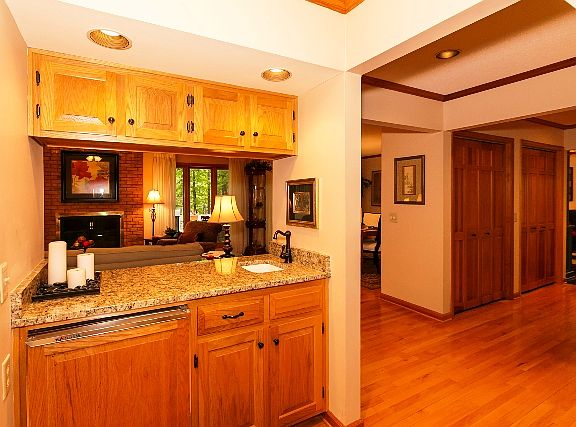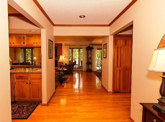 IMMACULATE ALL BRICK RANCH HOME, BEAUTIFULLY DECORATED, ON THE GOLF COURSE. MANY UPDATES IN THIS HOME WITH HARDWOODS AND TILE; SUNROOM WITH PLEXIGLASS OVER SCREENING ON FLOOR TO CEILING WALLS OVERLOOKING THE GOLF COURSE AND CEMENT FOUNTAIN POND; LARGE KITCHEN WITH ISLAND, SITTING AREA AND WINDOWED EATING NOOK WITH NUMEROUS BUILT-IN CABINETS AND PANTRY; SILESTONE QUARTZ COUNTERS;