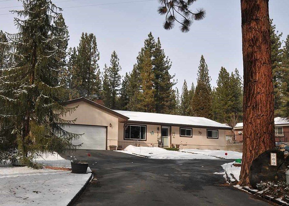 Located in a desirable N. Portola neighborhood, on a large lot with several out buildings. a circular drive way welcomes you with ample parking. The Living room boasts a newer wood stove insert and large picture window. The kitchen/dining/den are roomy and lead into a large laundry room with bathroom and pantry. A bath with shower/tub is accessible to all three bedrooms. One bedroom has a half bath. The covered patio offers lots of possibilities with a hot tub with no warrantees, leading out to a fenced back yard, backing up to a greenbelt area.