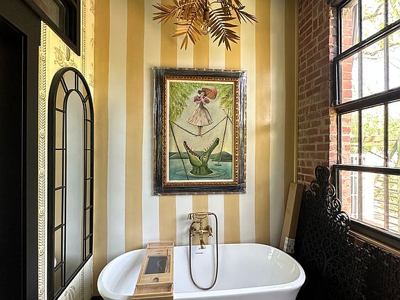 Beautifully restored warehoues lofts. The Big Easy Loft decor is inspired by the old charm and French influence of New Orleans, yet with every modern convenience you need to feel at home. It is approximately 800 square feet. There is a 50" smartTV with fast reliable wi-fi for streaming. The kitchen is fully equipped with a gas range, a retro-style refrigerator, a dishwasher, plus everything you need to prepare and serve your own meals. Gas fireplace, bathroom with soaking tub and separate shower, heated bathroom floors. A wall-mounted heating/cooling unit with electronic control will keep you at the perfect temperature and each unit has its own washer/dryer. Entry to the loft is by an electronic keypad lock, a Ring doorbell is installed, and a private locking mailbox for longer term stays. Located close to downtown Bristol on the Greenway walking trail. Convenient to area hospitals and perfect for the traveling professional or those in transistion. Lofts are fully furnished and include all utilities.
