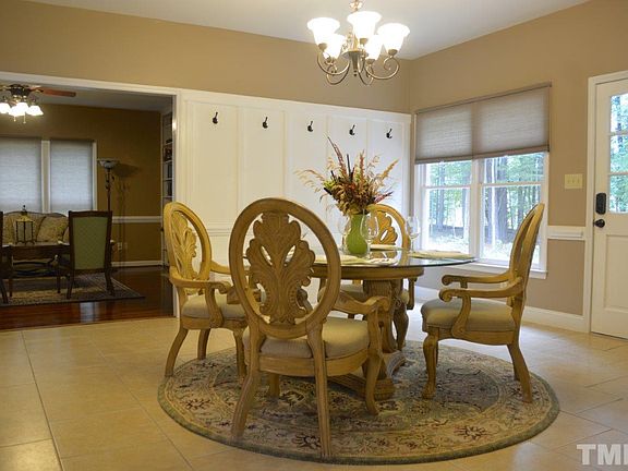 ELEGANT PRIVATE ESCAPE, NESTLED ON NEARLY FIVE WOODED ACRES! MINUTES TO WAKE FOREST, FULL OF CHARM! MUST SEE THIS FRESHLY UPDATED HOME! OPEN FAMILY ROOM LEADING INTO RAISED DINING AREA! INCREDIBLE KITCHEN WITH CORIAN COUNTERTOPS, TILE BACKSPLASH, AND WALK IN PANTRY! LARGE TILED BREAKFAST ROOM WITH OPEN LIVING SPACES LEADING TO 3 PORCHES AND BACK DECK! PRIVATE MASTER SUITE WITH HUGE WALK IN CLOSET! SPACIOUS SECONDARY BEDROOMS, PLUS BONUS ROOM! GREAT BACKYARD WITH FREQUENT VISITS OF DEER