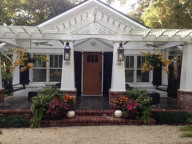 Attractive cottage newly remodeled and decorated offers olde Fairhope charm with gas lanterns, wood floors, original windows. Enter the cottage from front porch with windows all around, brick floors, with views of well planned yard. Brick and stone New Orleans style courtyard with firepit extends the length of the house. Near Fairhope Library and downtown stores and restaurants. 10 minute walk to the Bay!