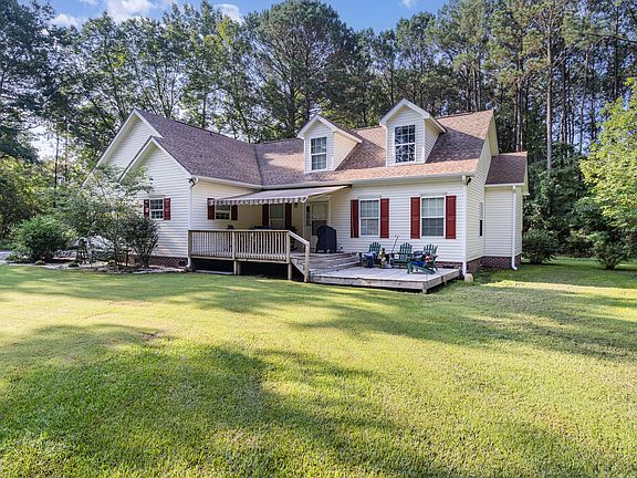 Discover your dream home nestled on a spacious 1.1-acre private lot, offering a perfect blend of tranquility and luxury. This beautifully designed 2,106 square foot residence features new luxury vinyl flooring throughout, enhancing its modern appeal. The open floor plan creates a warm and inviting atmosphere, perfect for both entertaining and everyday living. Cozy up by the real wood-burning fireplace in the expansive living area, which seamlessly flows into the dining and kitchen spaces. All bedrooms are conveniently located on the main floor, ensuring easy accessibility and comfort. The large owner's suite is a true retreat, boasting dual walk-in closets for ample storage. With the option to finish the upstairs, you have the potential to expand your living space and customize it to fit your needs. Don't miss this incredible opportunity to own a piece of paradise with endless possibilities!