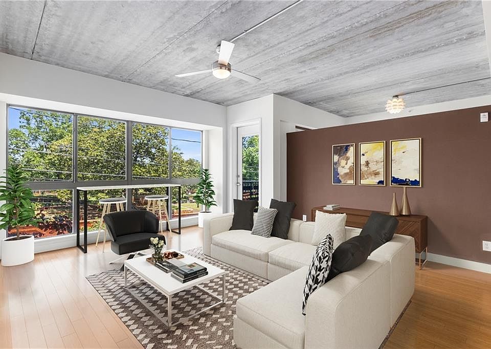Enjoy convenient in-town living in this bright, open floor plan filled with natural light and city views - while enjoying the perks of being in one of Atlanta's hottest Beltline neighborhoods. This two bed / two full bath condo is a refined mix of urban industrial design and quaint, modern living. Ten foot ceilings and floor to ceiling windows in the living room accentuate the open concept that flows effortlessly to the spacious kitchen with granite countertops, plentiful cabinet & pantry space, and breakfast bar. The spacious primary bedroom suite features an en suite bath, large shower, walk-in closet, and new flooring. Meanwhile, the versatile 2nd bedroom provides options as a bedroom, office, and/or media room. Admire the city views from your own private balcony or gather with friends up on the community rooftop - complete with tables, grills, and lounging areas. Owners benefit from not only the community fitness center, but also the modern efficiency and savings on utility costs as Oakland Park is a LEED certified community. Two assigned parking spots in the covered/gated garage are deeded with the condo. Park your car and enjoy short walks to various community events throughout the year, the Atlanta Beltline, Grant Park / Reynoldstown / Cabbagetown, and any of the dozens of local restaurants and attractions just outside your front door! No rental waitlist at time of listing. Conventional/FHA/VA loans all welcome.