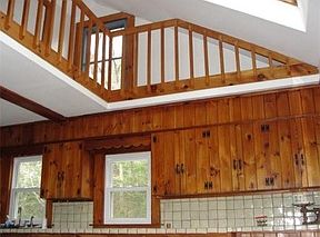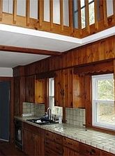 Nestled in the woods away from the street you will find this unique 2 bedroom home with a full bath on each floor. Located minutes away from downtown Amherst yet giving you the feeling of being in the country. Eat in kitchen includes tiled counter tops as well as stove, fridge, dishwasher and range. Skylights and cathedral ceiling make this space special and bright. Dining room with built in hutch and picture window to enjoy the view of this home's yard. Living room with fireplace. Upstairs master bedroom and Club footed bath tub in second floor bathroom. Lots of built in cabinets and hutch. Partially finished basement. Security and septic system newer. Plenty of off street parking as well as an over sized yard for fun and gardening and a porch! Garage with storage area.