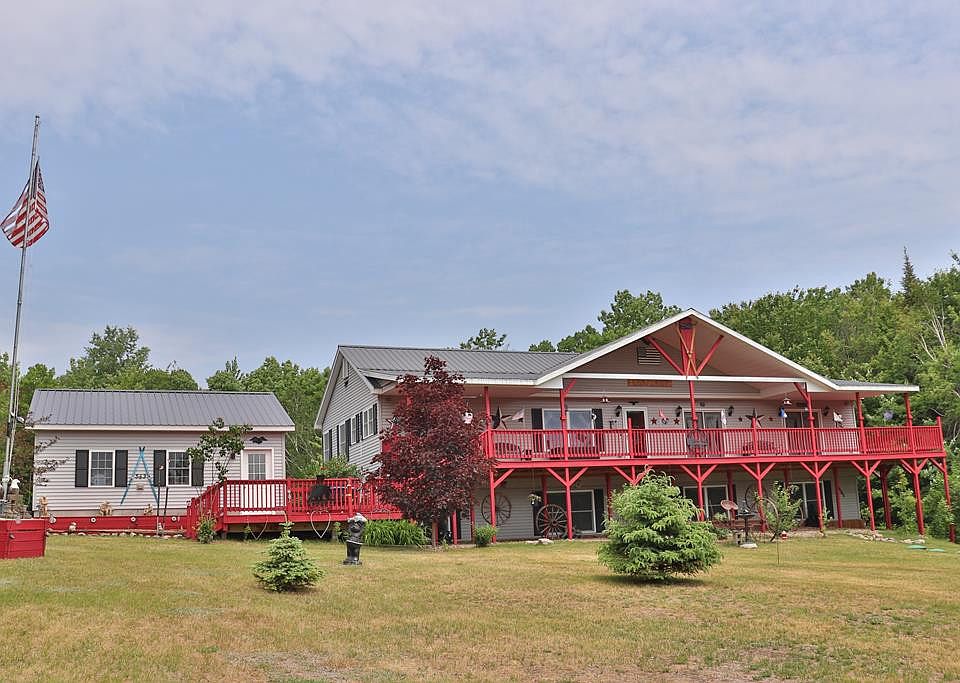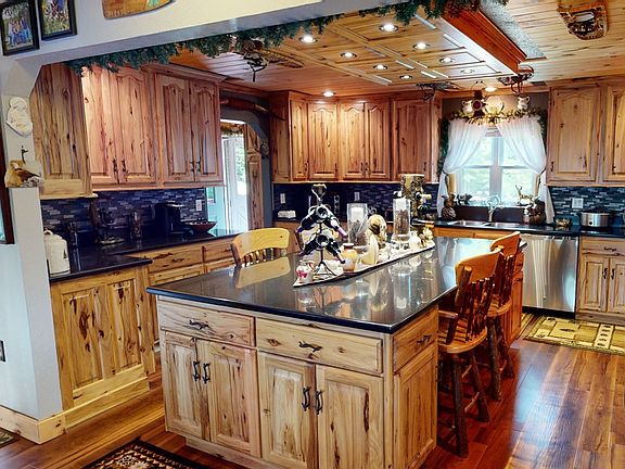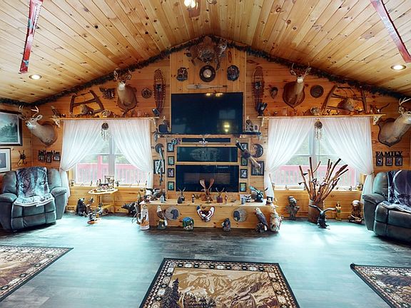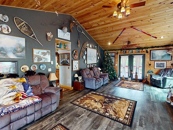 This well maintained home has lots of space on a private lot. Spacious kitchen with stainless appliances, custom cabinets and Corian countertops. Large living room with french doors leading to wrap around deck. Primary bedroom offers primary bathroom with jetted tub. Finished basement has a full kitchen, full bathroom, family room and 3 bedrooms. Nice path leads to brook on the property. Enjoy views of Whiteface Mountain from the front deck. 2 car detached garage and a 1 car detached garage.