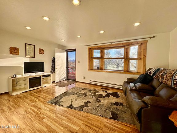 Step inside to find a bright and comfortable layout featuring 4 bedrooms, 2 bathrooms, an office, and two spacious living rooms, one on each level. The upstairs living room showcases a newly added bay window that floods the space with natural light and frames breathtaking views of Byers Peak and the valley below. The cozy lower level includes an additional living area and a bonus room that could serve as a playroom, studio, or potential 5th bedroom.