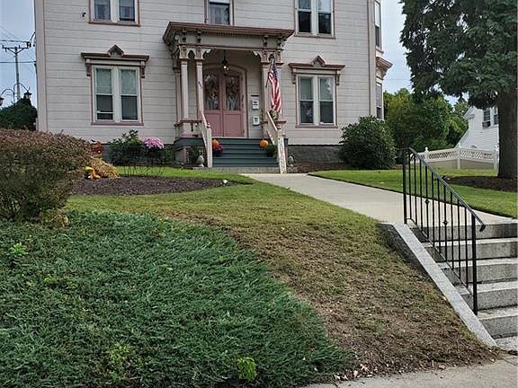 The Albert E. Greene House (circa 1876) in the historical end of Woonsocket has many architectural details in place. The front entrance features a three-story spiral mahogany staircase, tin ceilings. Original hardwoods, two marble fireplaces in both dining rooms. First floor has formal living room, dining room, den, two beds, kitchen, pantry and bath. Owner's townhouse unit includes five beds, and two baths with original clawfoot tub. House has over 5,000 sq. feet which can easily be converted to a single-family residence. Many updates include hardwired smokes, separate utilities and gas heat. No FHA, being SOLD AS IS!