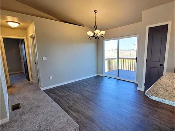 Estimated completion May 15, 2021. The house is currently with foundation in the ground (1.14.20). 3 Car Garage! This split foyer offers1,824 sqft of quality construction. The kitchen will showcase cabinets with crown molding, wood planked sheet vinyl flooring, foodpantry, island with breakfast bar and tons of cabinet space. The main level will house a 13x10 master bedroom with walk-in closet andaccess to the bath, a 10x10 spare bedroom with large walk-in closet, and a bath with linen closet. Construction to include: 2x6Construction, Maintenance free James Hardie Siding, White Low E Energy Efficient windows, 30-year architectural shingles. Foxborough is in close proximity to the Douglas School System and right at the edge of the main gate of Ellsworth Air Force Base. Pictures are from a previous Project.