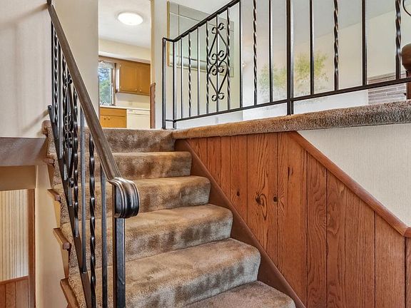 A very charming mid-century spilt on an oversized corner lot. Walk up into a wonderful living room featuring a gorgeous brick wood burning fireplace. Nice dining room with door out to the deck overlooking the back yard. The kitchen is laid out great with new flooring, plenty of storage and a dishwasher. The clean main floor full bath has a cute mid-century tile floor and tile shower surround. The two main floor bedrooms have decent closet space and there is hardwood flooring under the carpeting on this level. The lower level has a retro bedroom with paneling. A super useable nice sized family room with a brick fireplace converted to gas. The groovy lower level nautical themed 3/4 bath is really great to have next to the laundry room. This house has good mechanicals with a newer central A/C and a built in generator installed which is peace of mind for power outages. The attached garage has a newer concrete slab and is super clean. The backyard is really great. What a house