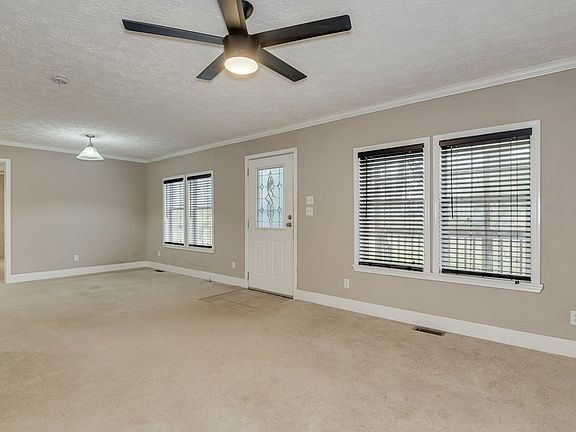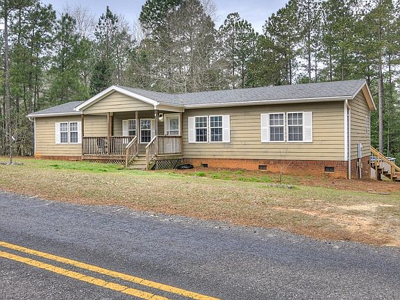 Country living close to town! Woods surrounding the .72-acre yard provide plenty of privacy, which is especially nice when relaxing on the huge back deck or in the above-ground pool, just installed last year. Come in the front door to a massive living room that flows directly into the dining room and kitchen. The open-concept floor plan gives you plenty of options for decorating and lots of room for entertaining, and many windows add to the open feel. Pull up some barstools to the kitchen counter for extra eating space. The kitchen features modern, black appliances and plenty of cabinet space. The spacious owners' suite has a master bathroom with a tub-shower combo and dual vanity. Two guest bedrooms each have walk-in closets, and one has a full ensuite bathroom. This beautiful, roomy doublewide sits on a permanent brick foundation and has been de-titled, making it move-in ready.