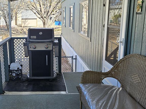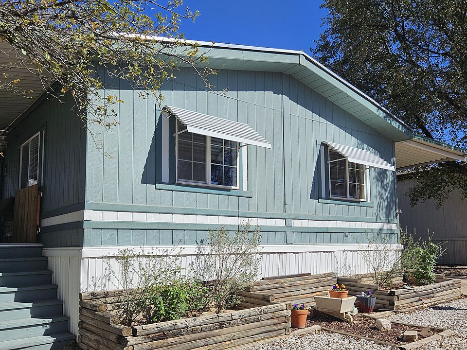 2 bedroom, 2 bath home with a den that could easily be converted to a third bedroom. Master bedroom is very large and comfortable. Bright, open living areas. A nice shady covered patio out front. A covered carport with a ramp in back. A small chain link fenced in yard. The Gated community offers two club houses, 2 pools (one indoor), Spa and many more amenities.