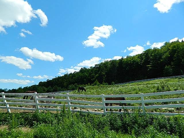 Small Horse farm with shelters in pastures. A Pond, vinyl and wood fence. Heated garage with attached tractor shed. 5 box stall barn. Huge loft for hay ans storage. House is cozy with 2 bedrooms one bath. Full basement.