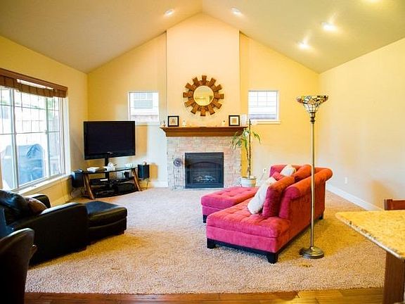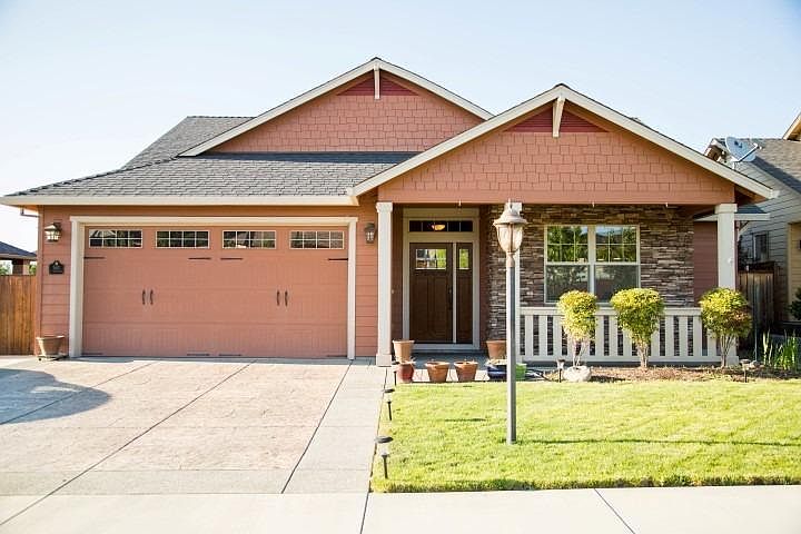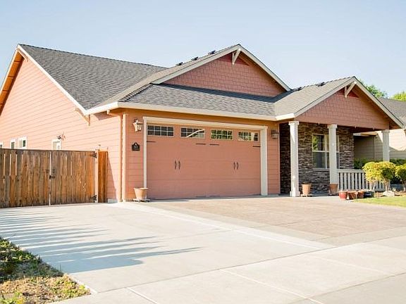 Fantastic Location and desirable neighborhood of East Medford for this open split floor plan home. Open living area with nice vaulted ceilings, electric fireplace for ambiance, large windows with window coverings throughout. Beautiful granite counters with island and bar seating in the kitchen along with a good size pantry & large dining area. Large vaulted master with door to the patio, large walk in closet and spacious master bath. Home offers wood floors throughout the hall, kitchen and dining area & carpet in the bedrooms and living room. Open living area opens up to the covered and finished patio with large back yard that includes a shed and fenced garden area. Great front yard with small patio, lighting, and mature landscaping. Complete with a finished garage with attic storage & an extra-large driveway & a huge paved RV parking area for all your toys! All appliances as well as the newer front load washer & dryer and the outdoor shed are all included.