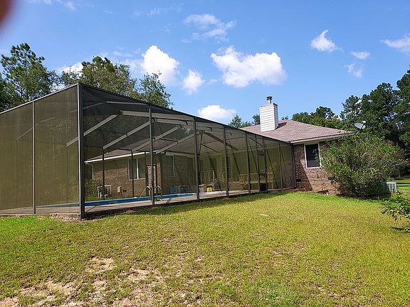 Beautiful brick home on 13.7 acres. (7 acres cleared 6 acres grove). Large porch on front of house, back has patio with deck and inground pool all screened in. 3 bedrooms, 2 1/2 baths, a large laundry room with 1/2 bath and large pantry. Living room with trey ceiling, 2 ceiling fans, and brick fireplace. All bedrooms have ceiling fans. Master bathroom has many cabinets and large tiled walk in shower. There is a workshop with 2 garage doors (one on front and one on back), plus attached lean-to.
