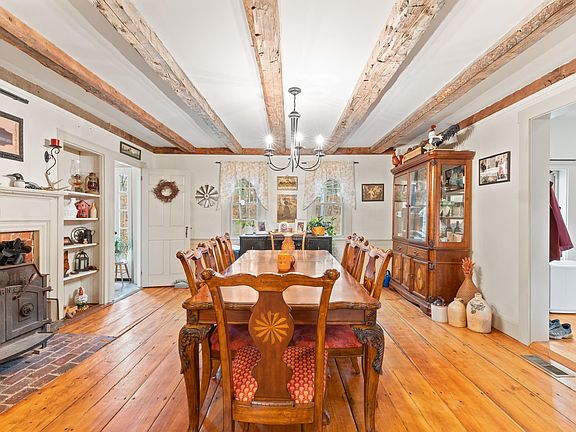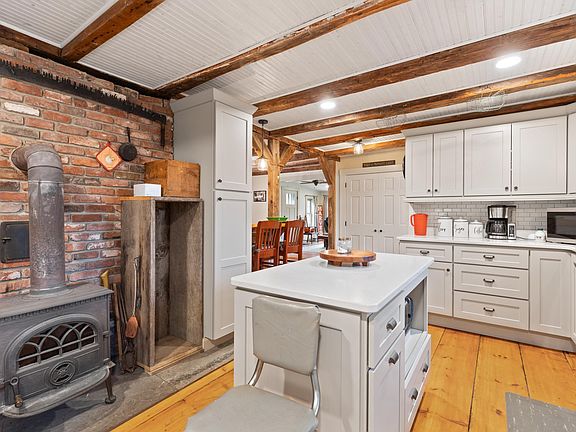 Beautiful 1830's home in Gilmanton NH on 21 acres complete with a barn and stable, raised garden, orchard and a pond. This rurally located homestead property has characteristics of yesteryears (exposed beams, gunstock corners, center chimney- antique hearths and/or mantles, wide pine floors)- fused with modern and updated bathrooms, and a bright new kitchen any cook would adore. The interior's common living area flows open concept perfect for gatherings. First floor has a 3/4 bath, a laundry/pantry and an additional room that could offer a 1st floor bedroom if needed. Upstairs features 4 sizable bedrooms, a full bath, library area and an office. Other recent valuable updates to the property are a recently insulated/sealed basement to maximize efficiency of home in all seasons. New rear deck and entry stoops, landscaping improvements, new vinyl siding, 2023 gutter system in place, 2017 replaced windows, rebuilt chimney in 2021, newer 4-bedroom septic also! This perfection of this property is completed with an oversized 2 car attached garage with a hay loft! This is a must-see home for the antique home enthusiast. Lots of love and care to all the details are obvious.