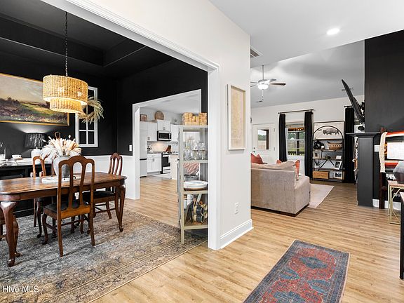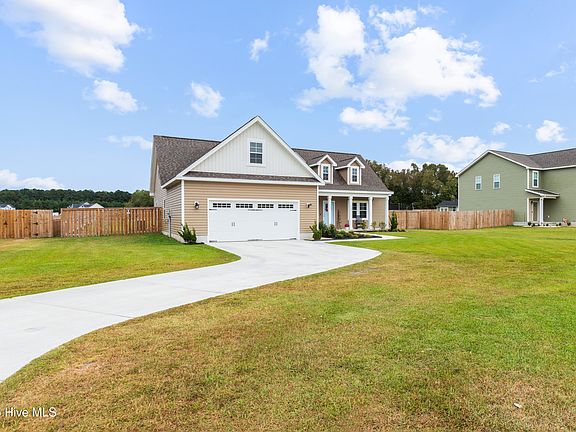 Award Winning School District! Welcome to Stella Rd. A stunning coastal cottage filled with a modern bohemian style. This gorgeous home in Coastal Meadows subdivision offers many upgrades throughout, sits right at 2000 sq ft and is situated on a 1.25 acre lot..what a dream! A perfect location just 15 minutes to Downtown Swansboro and only 15 minutes to the Emerald Isle Bridge. Enjoy single level living with a bonus room above the garage. An open concept dining, living, and kitchen space featuring gorgeous white cabinets, granite countertops, Bespoke Samsung appliances, and gold accents. Do not miss the stunning owners suite that overlooks the oversized backyard and relaxing back patio. The owners suite is equipped with a walk in closet and en suite bath with dual sinks and seperate tub and shower. The backyard is fully fenced and features a newly built covered patio perfect for entertaining and enjoying eastern NC evenings! This beauty is a MUST SEE. Schedule your showing today.