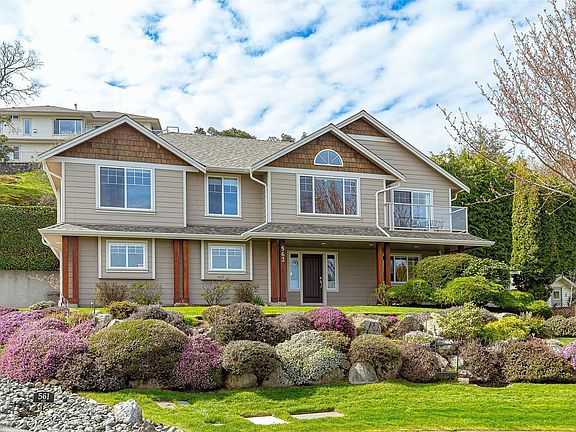 You will be excited for the opportunity the moment you drive up and view this BEAUTIFUL WELL MAINTAINED/UPDATED EXECUTIVE HOME in quiet cul-de-sac location with mountain/city views.Large veranda to welcome friends& family or perfect place to relax with a beverage.Bright/sunny open floor plan is sure to impress with large picture windows,vaulted ceilings ,crown moldings,hardwood floors &top of the line new Velux skylights.Entertainer's updated dream kitchen with stainless appliances and quartz counters opening to good size family room with gas F.P. Indoor/Outdoor living at its finest with step out to very large sunny, private patio. Master bedroom with walk thru closets to attractive updated ensuite.Lower level offers perfect home office location or separate accommodation for teenagers/guests.The garage has been divided to allow for a studio/exercise room/extra storage or can be brought back to double garage. New roof ,heat pump and blinds make this wonderful home move-in ready!