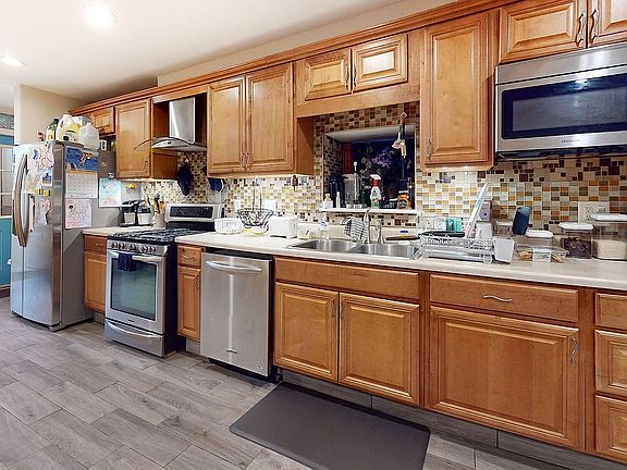 The garden level apartment is every bit as impressive as the rest of the home, with stylish wood flooring, an open kitchen finished to match the one upstairs, and two bedrooms, one of which can also serve as a work-from-home office. The bathroom has been exquisitely remodeled with a huge walk-in frameless shower, and there is also a laundry room with side-by-side front-loading W/D plus private front and rear entrances.