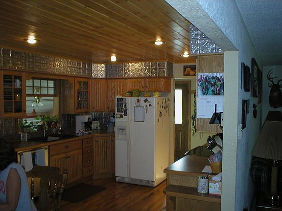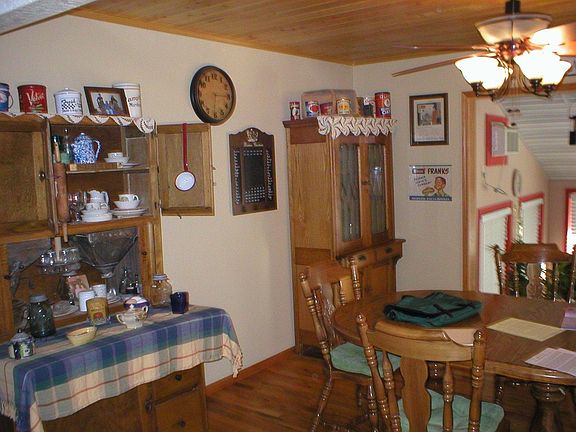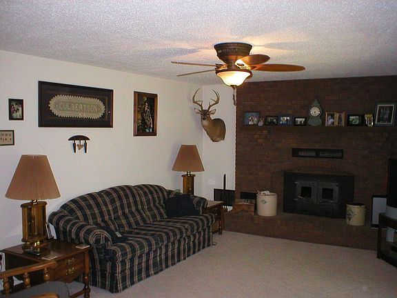 Spacious home on 3 acres m/l. 5BR, 2 3/4 BA. Rec. rm., Sunroom, Family rm. kitchen, dining rm, utility rm. Full finished basement. Oak cabinets and embossed metal tiles in kitchen. Range and dishwasher stay with house. Detached double car garage. (24x56) with large storage rm. (Room is big enough to store a boat in). Forced air furnace. Central air. Fireplace w/insert & blowers connected to the ductwork. Attic Fan. Deep well. 500 gal. propane tank stays. Reasonable utility costs. This a lovely home. (floors, ceilings, cabinets)
