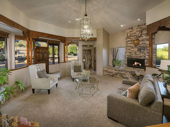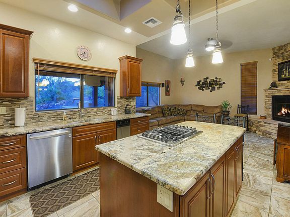Dramatic MTN VIEWS!! 1 story Foothills Home w/ many Updates on .87 OF AN ACRE. Living room w/ stone fireplace greets you. Completely remodeled kitchen w/ granite counters, ss appliances, breakfast bar, gas stove, two pantries + big island & more. Relaxing family room off kitchen w/ fireplace & yard access. 4 bed 2.5 bath home w/VIEWS from every window. Master en-suite w/ high ceilings, door to patio, jacuzzi tub, double sinks, granite counters & large walk in shower. Amazing outdoor living! Resort oasis backyard w/ pebble tec pool, spa, outdoor door kitchen & covered patio. Multiple viewing areas of Catalinas from home and backyard! Total privacy! Plenty of space beyond walls to build guest house or workshop, tons of possibilities. Track around perimeter. Bring your toys. NO HOA. Dist. 16