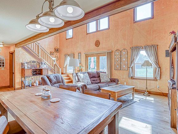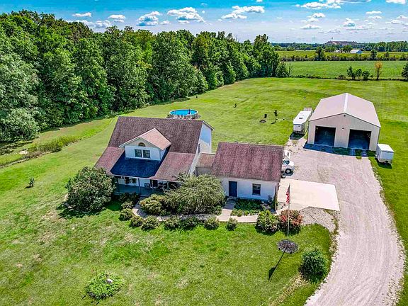 Come see some of the Best Peace and Quiet that Country Living has to Offer! This Gorgeous, 5 bedroom Country Home built by Niemeyer Builders is situated on 4.1 acres backing up to woods and fields. Pulling up to the home, you can't help but notice the Large, 80'x40' Insulated Pole Barn with Propane Heat, 6" Concrete floors, and is less than 5 years old. Entering through the covered front porch into the foyer, you are greeted by the large, Open Living Room with Vaulted ceiling. The living room is open to the Country Kitchen and Breakfast Nook. On the other end of the living room you'll find the Main Bedroom En Suite located on the main level. Upstairs, you'll find two more bedrooms and a Loft overlooking the Living Room. Continuing downstairs into the Large Finished Basement with Newer plush Carpet, Large Rec Room, two more Bedrooms, and utility room. Heading back upstairs, and off the back of the house is a newer Deck, large backyard, and Pool! This property has been updated and well cared for. Some updates include a Closed-Loop Geothermal Heating and cooling system, flooring, and more. Propane tank is rented. House is all-electric.