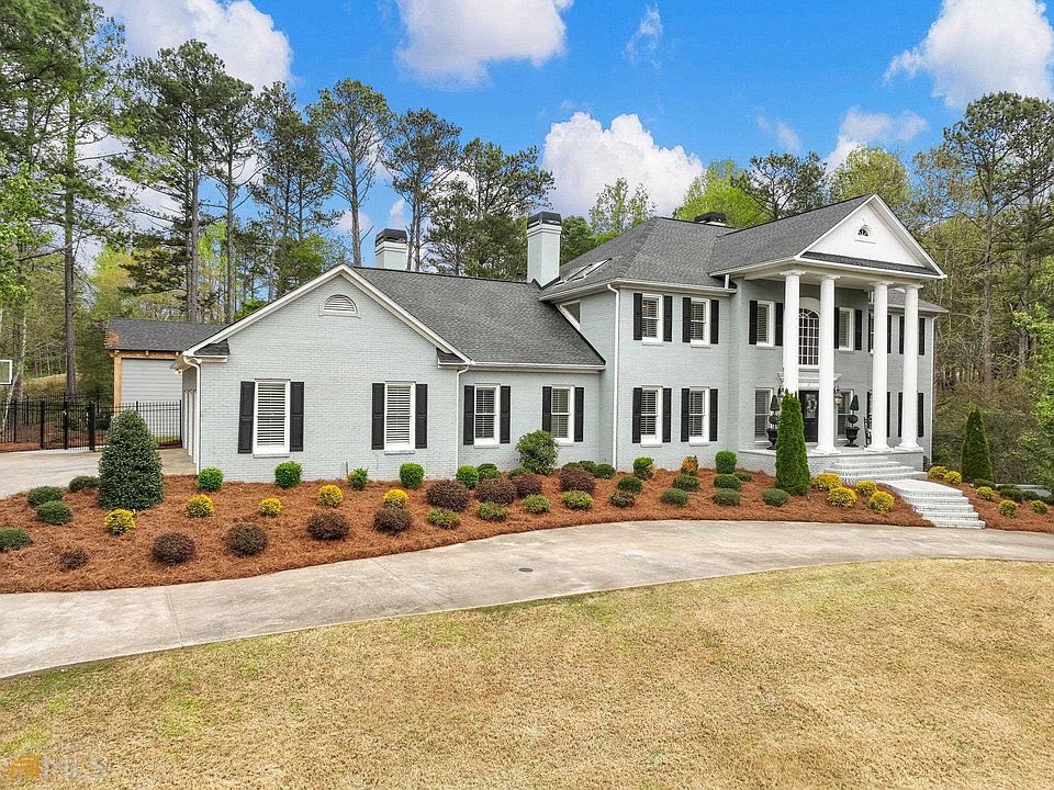 Welcome Home to 5630 Golf Club Drive in the prestigious gated community of Chateau Elan! This stately four side brick home has been updated throughout, sparing no expense to detail. Situated on a beautiful corner lot on the 18th tee box of the Chateau Course, this home sits nestled on 1.46 acres with an amazing heated salt water pool, spa, gorgeous gazebo, bath, fireplace, outdoor bar and grill area for entertaining family and friends with dual entry U-shaped driveway. The colonial style home has 3 car side entry garage doors, a large front porch, double front entry doors, manicured landscaping throughout property and professional landscape lighting. As you enter through the front doors, you are greeted by a 2-story foyer. Main level features; formal dining room, hardwood floors throughout, plantation shutters, fireside two story great room with beautiful built-ins and lots of natural lighting throughout the home, large open concept in the kitchen area, fireside keeping room and breakfast area that all overlooks the breathtaking view of the backyard and golf course. Kitchen has double islands, white cabinets with quartzite countertops and stainless steel appliances. Mud room/laundry room, half bath, custom wood office with wood built-ins and fireplace, bedroom, and a full bath. Upstairs you will find the primary bedroom with a sitting area and a private spa like bathroom, new sky light windows, large shower, free standing soaking tub and walk in custom closet. The secondary bedrooms share a jack and jill bath. The fully finished terrace level is spacious and perfect for entertaining; large open living area complete with a fireplace, bar, media room, recreation area and full bath. This home has its own wired wifi on all levels of home inside and outside, wired security system throughout the home, 5 fireplaces, fenced in back yard plenty of room to play in the yard. If you have been waiting for the perfect home inside the gates of Chateau Elan, the wait is over. Come tour this home today, you will not be disappointed.
