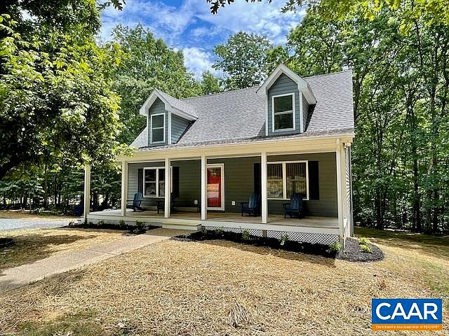 Extremely private 10 acre property with beautifully updated Cape Cod home is MOVE IN READY. Nestled in Southern Albemarle, property offers 1.5 story Cape Cod with finished basement making this home an expansive 2,760 finished square feet of living space. Main floor boasts stunning living room with gleaming hardwood floors, cathedral ceiling, stone floor to ceiling stone gas fireplace and skylight. Living room opens effortlessly to kitchen with breakfast bar and additional space for dining table. Laundry room with ceramic tile flooring has access to huge back deck. The primary en-suite is also on the main floor, and features new carpet, walk in closet, double vanities, freestanding tub and exquisitely tiled shower. 2nd floor features 2 spacious bedrooms, both with walk in closets and built in shelving and easy access to 2nd floor hall bathroom. Finished basement offers a flexible space, and features a full bathroom and well equipped full kitchen! In addition, there is a 960sqft detached garage. Plenty of parking, beautiful home in a quiet, rural area of Albemarle County. Too many highlights and improvements to list here, check out the full list of highlights in docs.