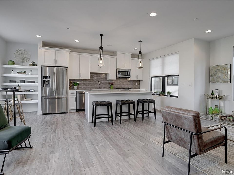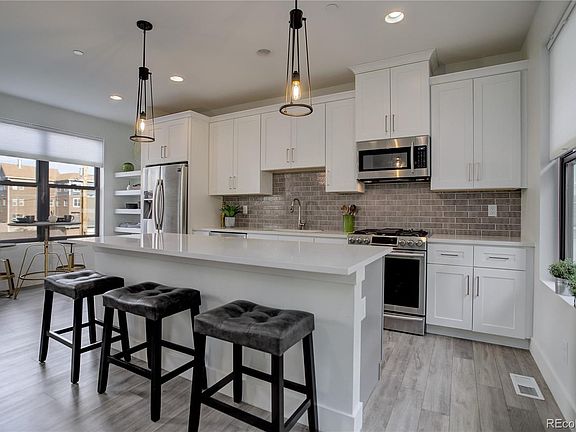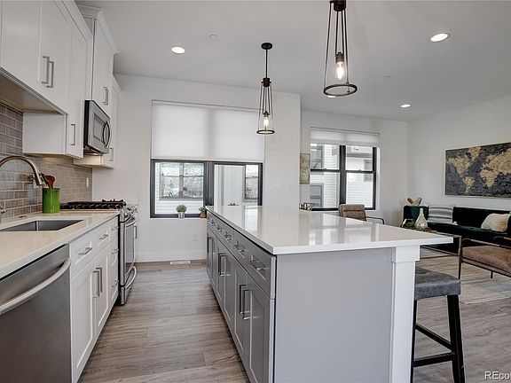 PRICED TO GIVE BUYER $50,000 IMMEDIATE EQUITY. Smaller unit in front sold in 2022 for $752K. Location!!! Only a block off of historic Main Street in Old Littleton, this is the perfect blend of charming urban walkability & beautiful open spaces. 5630 S. Curtice is in the heart of Denver's "best small town" Littleton, with award winning schools, and a neighborhood that makes you feel like you are part of hometown community. You can walk to light rail in 6 blocks, which can take you all over Denver and the airport. Walk 10 minutes the other way & you are at the beautiful Platte River trail... this is truly the best of both worlds. Inside, you will find top trending style with black clad (Anderson) windows, upgraded trim work, gray paneled doors, white quartz throughout, SS appliances, gas range. Two beds/three baths, an open floor plan featuring a great room with a large kitchen island, eating area, living area, & open shelving for storage or to make a work space for studying or working at home. Private rooftop deck with breathtaking mountain views & sunsets. The owners have regular movie nights up there and grill out on the included gas grill that has it's own dedicated gas line. Historic Old Littleton is a unique mix or original historic buildings that will never change, and newer modern multi-family housing that is selling upwards of $1M. Great home for Investors looking for rental income, or the Buyer who loves both best in walkability, a vibrant lifestyle right out your door, as well as Colorado mountain views from home, & access to the Platte River and the trail that will take you south to the mountains, or north to Downtown Denver. Events, restaurants, pubs, coffee shops, boutiques, a theater, post office, etc. Lowest price townhome on the market, priced to sell, & motivated! Pictures online show a larger dining room table and sectional couch for added perspective. Cafe next-door closes at 2pm every day & is closed Sunday & Monday for added parking.