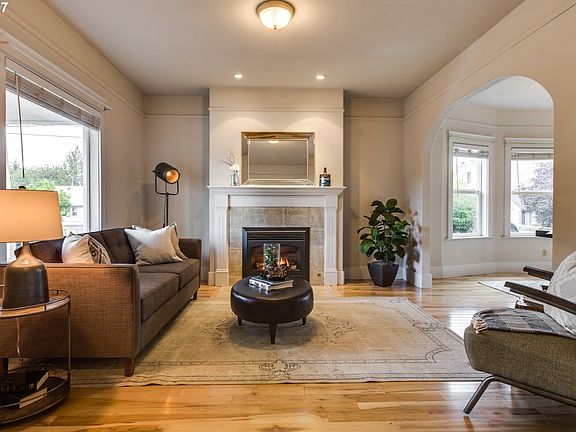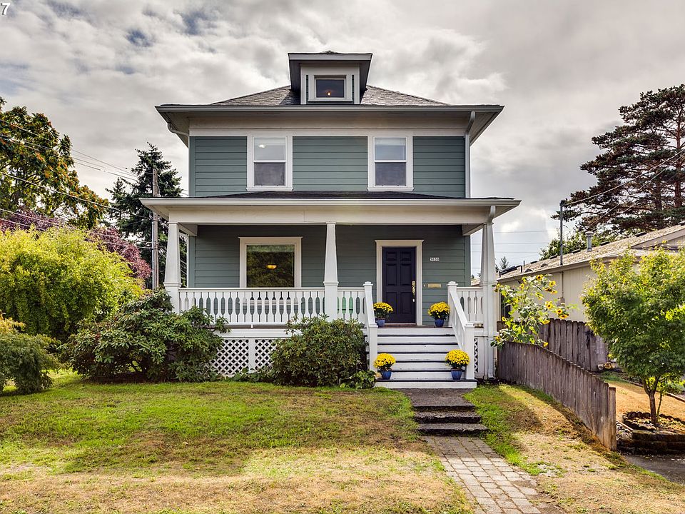 Remodeled Old Portland Foursquare in coveted Creston-Kenilworth. Picturesque wide front porch. Opens into elegant foyer with open stairs, living & dining room w/ hardwoods, french doors, fireplace & archways. Modern kitchen w/ plenty of storage & gas range. Main level laundry room, plus convenience of attached garage! Master suite, 2 beds & full bath upstairs. Attic Bonus Room & unfinished basement. Fenced backyard & paver patio.