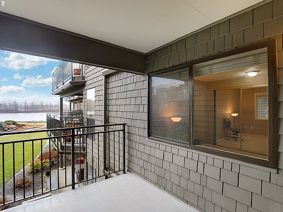 Lovely 2 bedroom end unit just a few steps from the Willamette River & waterfront path for biking & walking. Direct river view & covered deck. Recent exterior improvements include siding, stairs, private & public decks. New washer, garbage disposal, convection heater. Newer Milguard windows, breaker box & natural cabinetry w/granite throughout. Covered deeded parking spot. HOA includes basic cable & bike room access. Come see!
