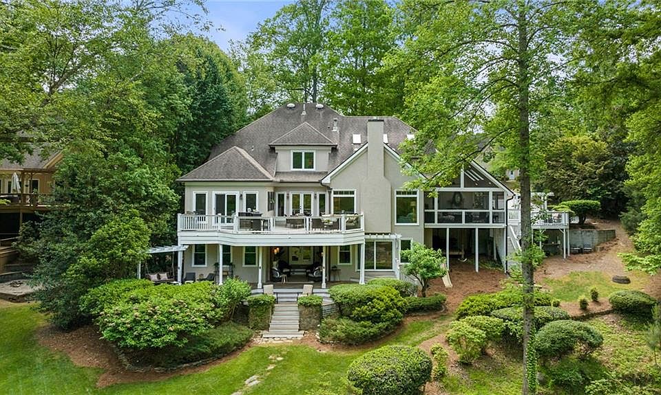 Your one-of-a-kind Johns Creek oasis awaits at 5630 Sandown Way. Located directly on Johns Creek with private access to the creek and surrounding woods, this rare gem of a home sits on a TRIPLE lot, offering nearly 4 acres of serenity and privacy. Over $400,000 of renovations and upgrades have gone into this home since it was built, completely opening up and tastefully modernizing the foyer, dining area, kitchen with quartz countertops, formal living spaces and more. You'll find hardwood floors throughout majority of the home, including the owner's suite on the main level with its renovated bathroom. Views from the entire back of the home are unparalleled, from no matter the level that you find yourself gazing through its updated windows. In addition to the bedroom count, there are several bonus rooms, office and sunrooms to offer flexible uses for your lifestyle. The finished basement offers the ultimate entertaining area, including the kitchenette, cinema area, additional bathroom, tons of storage and access to the backyard. Outdoors is where the magic really begins – Over 1,500 additional square feet have been added through the expansive Brazilian Ipe hardwood decks and screened-in porch across 2 levels. These decks are built to last, and built to impress as you and yours enjoy all seasons overlooking what has affectionately been nicknamed the "Johns Creek Beach." Head down to the water with your favorite beach chair or walking shoes to take in the views of flowing water, trails through the woods or a sunset campfire. Visitors say this home feels like the perfect combination of North Georgia Mountains tranquility meeting the convenience and top school district location that the Stonehaven community has to offer. 5630 Sandown Way is completely turn-key and ready for you to call it your next "home sweet home." Be sure to check out the video and 3D Tour!