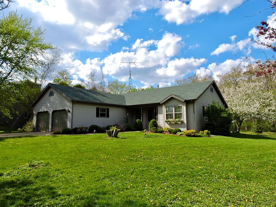 Peaceful country setting turn key ranch features great windows to enjoy the privacy of its location! Private woods to back of property- Patio to enjoy this setting-Storage shed in back yard. New roof, AC unit and sump - Open floor plan - Kitchen dinette area looks into living room - Living room features wood burning stove along with wood flooring - Split ranch with three bedrooms and two full baths -Sun room to enjoy the private setting- just two minutes from Geneva Lake - Lower level finished with built in electric fireplace, full bath and tons of storage - also area with workshop and cabinets - Pride in home ownership both inside and out- Ready for qualified buyer!!