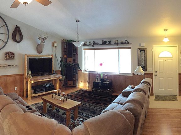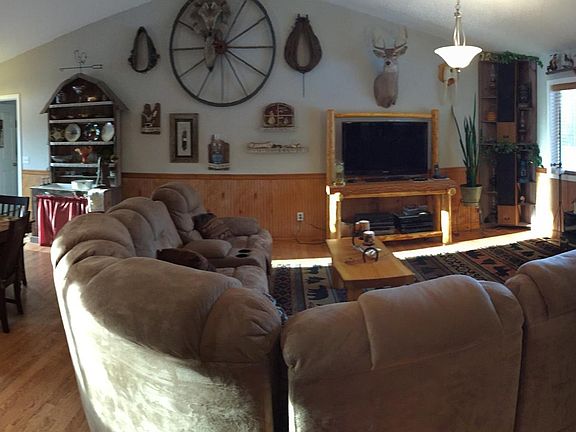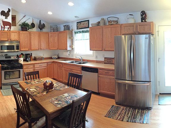 Downsize in Style! Very well-loved (Smoke and Pet-free) Ranch on almost a level Private acre: Open concept living with vaulted ceiling; gas forced air furnace; quality laminate flooring; carpet in bedrooms; loads of wall space for art and photos; huge kitchen w/stainless steel appliances and loads of cabinets; nice master w/full bath; 2'' faux blinds; 1- car attached garage with keypad; low...maintenance vinyl siding; large storage shed; firepit; and many more extra's that you will love! Would be easy to make this home handicap accessible if needed now or in the future. Quiet street- not very much traffic goes by, per seller.