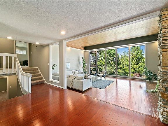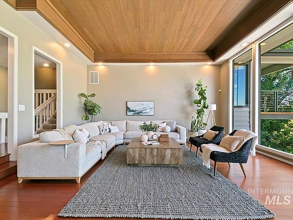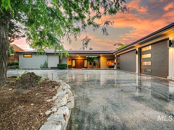 Perched on the 2nd bench, in the historic Randolph Roberts Neighborhood this 1.2 acre property is a magical haven in the city. One of a kind contemporary/midcentury style home with stunning views of downtown Boise and the foothills. In the Winter you can see from the lights of Bogus Basin to the cross at Table Rock. N/NE orientation allows for maximum Summer enjoyment without harsh direct sun. Upgrades include Brazilian Ipe deck, Viking chef's kitchen, floor to ceiling double sided rock fireplace and heated pool. Primary bedroom is like a treehouse sanctuary w/an enviable closet, heated bathroom floors and its own second laundry room. A gardeners dream with 3 sources of water; irrigation, a well and city service. Large solar panel system, a barn and the grandfathered ability to have horses all within 10 minutes to downtown and the airport. New UV pool filter, New pool cover. Den could be used as 6th bedroom. 11 chickens can stay or go.